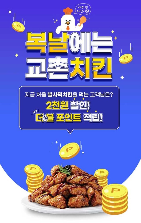 교촌은 중복을 맞아 무더위에 지친 고객들의 원기회복을 위해 이번 이벤트를 마련했다. 교촌치킨 주문앱을 통해 신제품 발사믹치킨 주문 시 포인트 2배가 적립된다. 첫 주문인 경우에는 현재 교촌 주문앱에서 진행 중인 '프리퀀시 이벤트'로 2000원 할인 혜택이 추가 제공된다. 프리퀀시 이벤트는 발사믹치킨 출시를 기념해 구매할 때마다 할인이 추가되는 행사로 이달 말까지 진행된다.