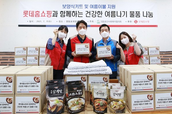 지난 7일에는 초복을 앞두고 영등포구 소외계층 200가구에 삼계탕, 추어탕 등 간편 보양식과 여름 이불을 전달했다. 특히, 무더위에도 겨울 이불로 생활하는 지역 내 장애인들을 위해 여름용 홑이불을 지원했다. 앞서 5월에는 어버이날을 맞아 지역 어르신들의 정서적 안정과 건강한 노후를 기원하며 카네이션과 갈비탕, 잡곡 등 식료품이 담긴 ‘건강백세꾸러미’를 전달했다. 물품은 ‘영등포 희망수라간 서포터즈’가 직접 방문해 집 앞에 걸어놓는 비대면 방식으로 전달했다. 롯데홈쇼핑은 현재까지 희망수라간 활동을 통해 총 274회, 4만 7천여 개의 반찬을 지원했다.