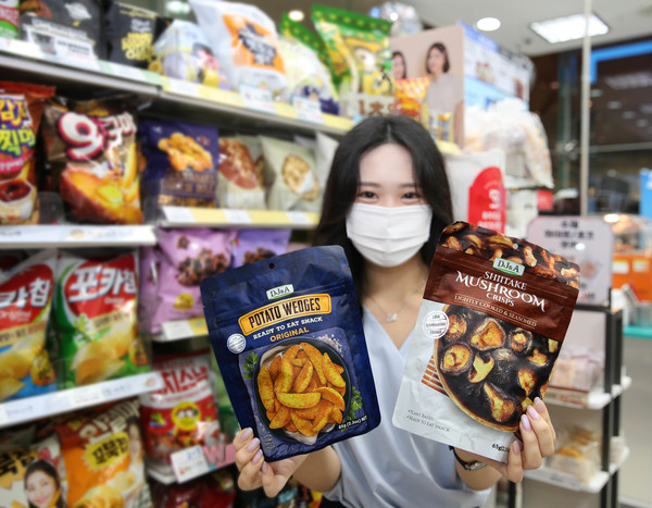 GS25는 이달 5일 △DJ&A머쉬룸칩30G(이하 머쉬룸칩) △DJ&A포테이토웨지스오리지널65G(이하 포테이토웨지스)등 비건 인증 상품 2종을 추가 출시하며 비건 상품 라인업 강화에 나선다.