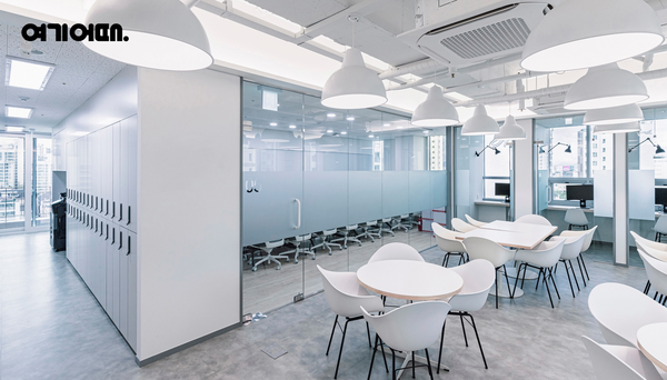 제2 사옥은 브랜드 정체성이 반영된 인테리어를 담아 공유 오피스 형태로 설계했다. 회사 체류 시간이 줄어든 근무 변화를 고려했다.