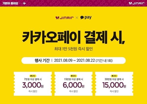 한편 진에어는 2015년 항공사 최초로 카카오페이를 도입하고 꾸준히 간편 결제 서비스를 확대해왔다. 현재 네이버페이, 스마일페이, 페이코, 토스 등의 간편 결제 서비스를 제공하고 있고 지난 3월부터는 티머니페이 도입을 준비 중이다.