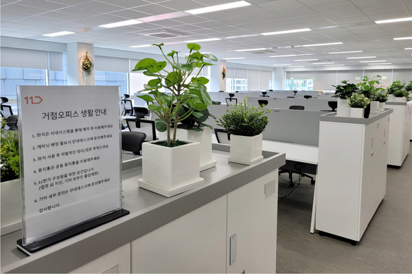 현재 11번가는 전사 재택근무를 원칙으로 하고 있어 꼭 필요한 경우에 한해서 거점 오피스 이용하는 것을 권장하고 있다. 11번가 구성원 누구나 이용할 수 있으며 현재는 거리두기 방침으로 좌석의 절반 이하로 이용 예약을 받는다.