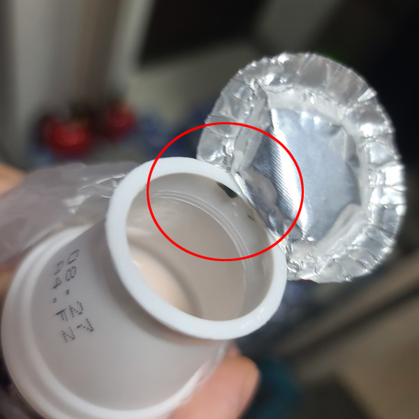 경상북도 예천군에 사는 김 모(남)씨는 마트에서 구매해 냉장 보관한 드링크 요구르트를 지난 21일 개봉했다가 용기 입구 부분에 붙어 있는 검은 이물을 발견하고 깜짝 놀랐다. 블루베리 과육이 아닌 곰팡이로 의심돼 업체 측에 제품 회수와 검사를 요청했다.