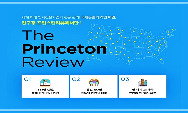 한편, 프린스턴리뷰는 전 세계 20개국, 700여개 센터에서 매년 150만명 이상의 명문대 합격생을 배출하는 세계 최고 입시 교육 기업으로, 학생들의 성공적인 입시와 진학을 돕는 가이드라인을 제시한다.