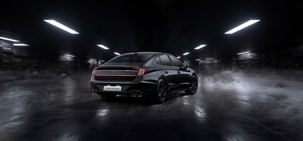 후면부는 현대차 엠블럼과 쏘나타 레터링에 다크 크롬 색상을 적용해 전면부와 통일감을 줬으며 카본 리어 스포일러로 역동적인 외관을 완성했다.