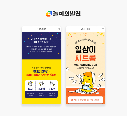 아이 사진 콘테스트인 ‘일상이 시트콤’ 이벤트도 진행한다. 아이가 놀고 있는 재미있는 모습의 사진을 에피소드와 함께 놀이의발견 앱에 올리면 응모 가능하다.