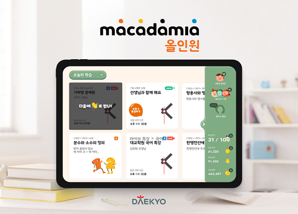 대교에 따르면 ‘마카다미아 올인원’은 초등 전과목을 태블릿 PC를 활용해 학습하고 개인별 맞춤 학습할 수 있도록 설계된 AI 학습 프로그램이다. 주 1회 메시지 학습 코칭과 월 1회 학부모 전화 상담을 제공한다.