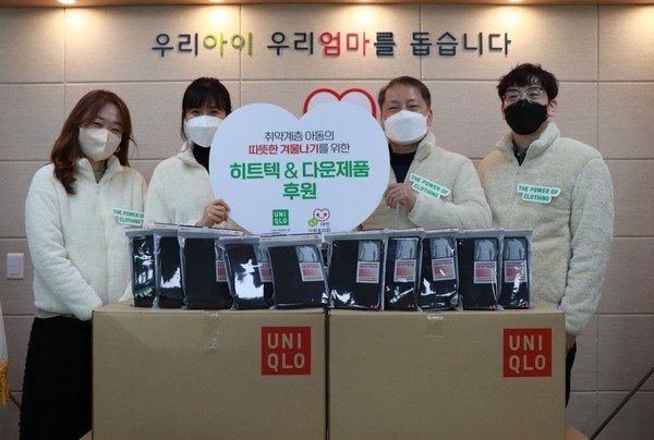 유니클로는 지난 13일 사회복지법인 대한사회복지회를 통해 약 2000만 원 상당의 히트텍과 다운 제품 800벌을 복지 시설에서 생활하는 어린이들에게 전달했다. 사회 취약계층의 따뜻한 겨울나기에 도움이 되고자 하는 취지다.