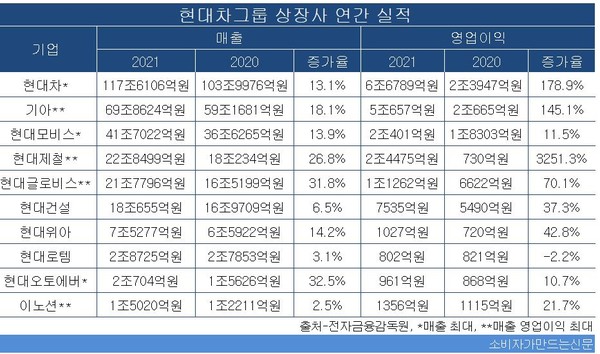기아는 최초로 매출 60조원 대, 영업이익 5조 원 벽을 넘었다. 현대제철과 현대글로비스도 영업이익 2조 원, 1조 원 시대를 열었다.