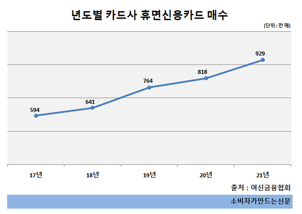 휴면 신용카드 수는 매년 증가하고 있다. 2017년 594만 매, 2018년 641만 매였지만 2019년 '신용카드 자동해지 규정'이 폐지, 2021년 1월 카드사에 적용되면서 더욱 늘어났다. 기존에는 신용카드를 1년 이상 사용하지 않을 경우 휴면카드로 전환되고, 유지 의사를 밝히지 않으면 9개월 이후 자동 해지됐다.