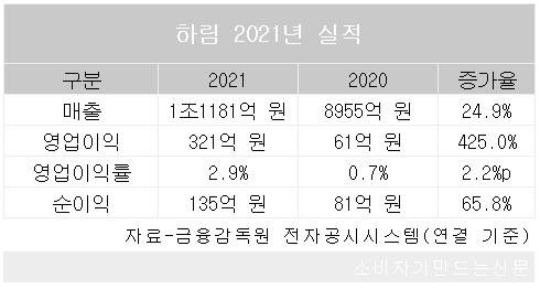 종합식품기업 하림은 연결 기준 지난해 연매출 1조1181억 원과 영업이익 321억 원, 순이익 135억 원의 잠정 실적을 11일 공시했다.