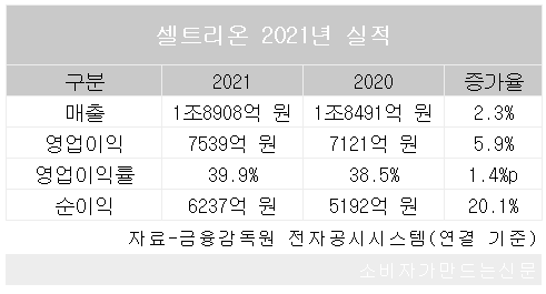 셀트리온, 지난해 매출·영업이익 역대 최대…영업이익률 39.9%