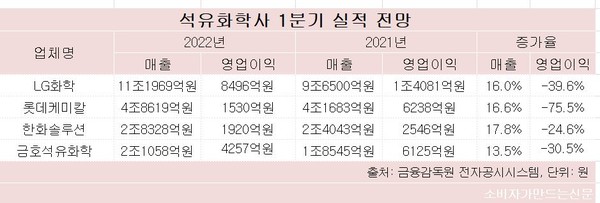유가상승으로 LG화학·롯데케미칼·한화솔루션·금호석화 등 1분기 수익 반토막 전망