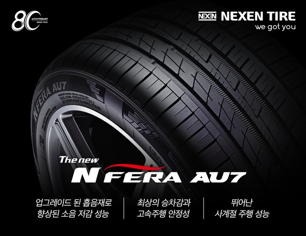 신제품 ‘더 뉴 엔페라 AU7’은 2017년 출시해 많은 호응을 얻은 넥센타이어의 사계절용 프리미엄 타이어인 ‘엔페라 AU7’의 리뉴얼 제품으로, 프리미엄 타이어 시장의 확대와 저소음 타이어를 선호하는 소비자의 니즈에 부응하기 위해 기존 제품의 성능을 강화했다.