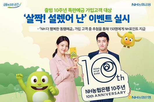 농협은행은 출범 10주년을 맞아 특판상품인 'NH 더 행복한 동행 예금'을 출시했다고 밝혔다.