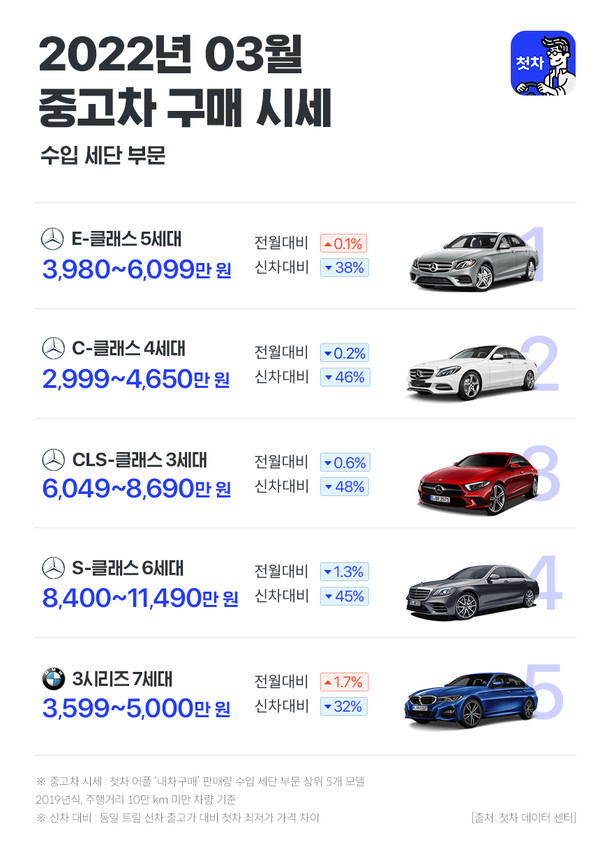 첫차, “3월 수입 중고차 순위권 벤츠가 점령”