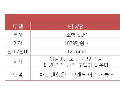 ◆SUV를 원한다면 쌍용자동차 ‘티볼리’가 원픽