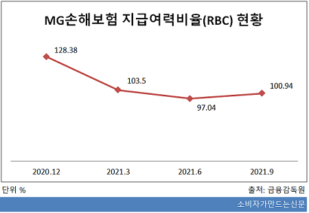 MG손보는 지난해 6월 RBC비율이 97.04%로 경영개선권고에 해당되면서 금융당국의 지적을 받은 바 있다.