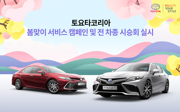 ‘2022 토요타 스프링 리프레시 서비스 캠페인’은 오는 4월 2일까지 진행되며 캠페인 기간 중 전국 토요타 딜러 서비스센터에 입고하는 모든 고객에게 에어컨 점검 서비스와 자동차 살균 소독 서비스를 무상으로 제공한다.