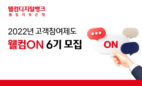 이번 6번째 웰컴온 패널 모집 인원은 100명으로, 4월5일까지 웰컴디지털뱅크 및 홈페이지에서 신청 가능하다.