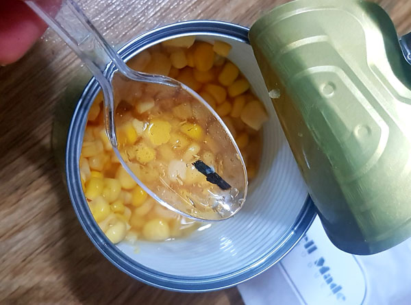 전라북도 전주시에 사는 최 모(여)씨는 대형마트에서 산 옥수수 통조림을 수저로 떠 먹다가 뭔가가 씹혀 깜짝 놀랐다. 뱉어보니 나무조각으로 보이는 시커먼 이물이었다.