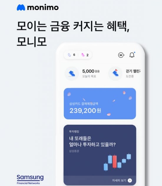 모니모는 삼성금융네트웍스에서 제공하는 첫 번째 서비스로 삼성생명, 화재, 카드, 증권 등 삼성금융 4사가 급변하는 금융환경에서 차별화된 고객 편의성 제고를 위해 만든 통합앱이다.