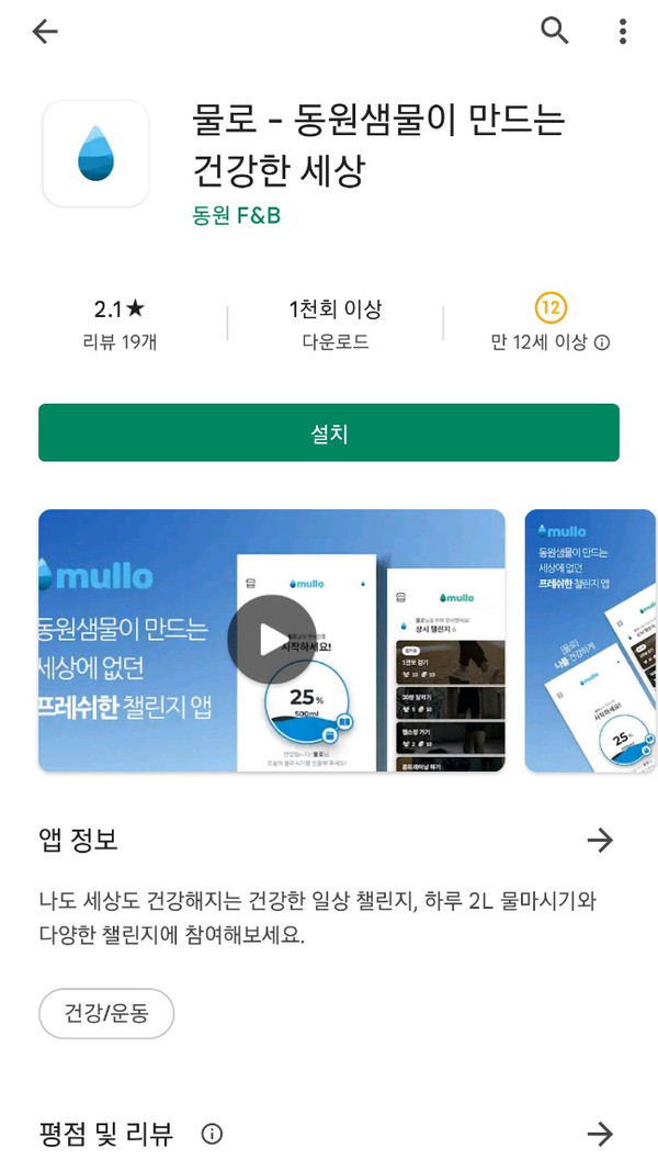동원F&B에 따르면 mullo(물로) 앱은 앞서 약 열흘간 운영한 사전등록 기간에 1만 명 이상의 신청자가 몰렸다. 건강관리 플랫폼 서클인과 협업해 시범 운영한 물 마시기 챌린지에는 500명 이상의 도전자가 참여해 숲 조성을 위한 기부금 마련에 동참하기도 했다.