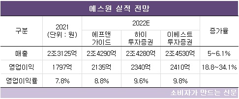 보안 업계는 에스원과 SK쉴더스(대표 박진효), KT텔레캅(대표 장지호) 등이 5:3:2의 비율로 시장을 점유하고 있다. 5월 중으로 상장되는 SK쉴더스는 공모 규모가 에스원 시가총액과 맞먹는 수준으로 예상된다. 에스원 입장에서는 매출을 지속적으로 늘려 시장에서의 1위 자리를 공고히 할 필요가 있다.