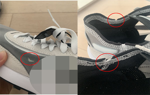 운동화 일부에 이물질이 묻어 있거나 마감 부분이 찢어진 곳도 여러 개였다. 플랫폼 측에 환불을 요구했지만 검수 기준을 통과했기 때문에 문제될 게 없다며 환불을 거절했다.
