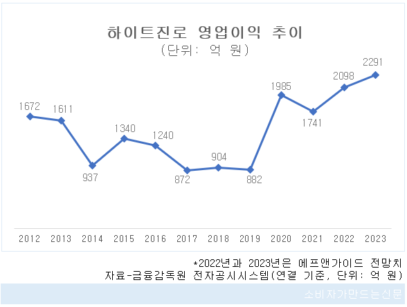 6일 금융정보업체 에프앤가이드에 따르면 하이트진로는 올해 2000억 원이 넘는 연결 영업이익을 올릴 것으로 보인다.