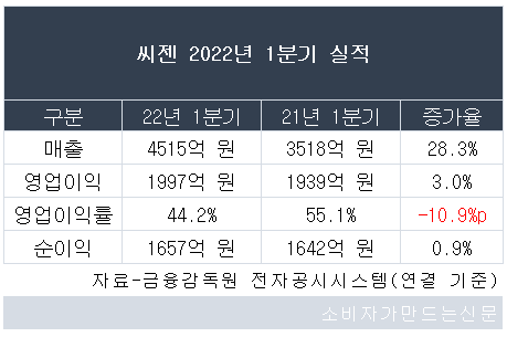 영업이익은 1997억 원으로 전년에 비해 3% 늘고, 순이익은 1657억 원으로 0.9% 증가했다. 이에 따른 영업이익률은 44.2%로 전년동기 대비 10.9%포인트 하락했다.