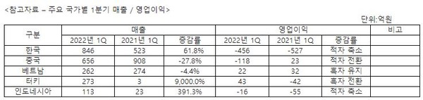 각 국가별로 살펴보면, 국내에서는 ‘스파이더맨: 노 웨이 홈’의 흥행과 더불어 ‘해적: 도깨비 깃발’, ‘킹메이커’ 등 신작 한국영화의 개봉으로 전년동기대비 매출은 61.8% 상승한 846억 원을 기록했고, 영업손실은 71억 원 개선한 456억 원이다.