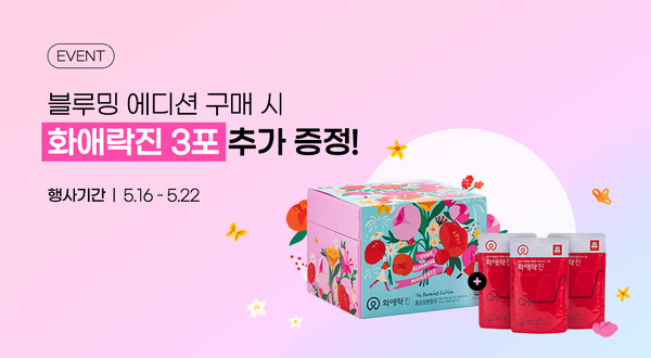 이벤트는 정관장 화애락진 블루밍 에디션을 행사 기간에 구매한 고객에게 화애락진 3포를 추가 증정하는 내용이다.