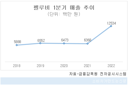 대원제약의 주력 품목 중 하나인 펠루비도 올 1분기 코로나19 특수를 누렸다. 최근 5년간 1분기 매출 추이를 보면 2018년 59억 원에서 2019년 66억 원, 2020년 65억 원, 2021년 64억 원으로 60억 원 내외를 유지하다 올해 125억 원으로 100억 원을 처음으로 넘겼다.