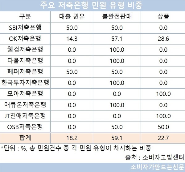 저축은행 부문에서 지난해 가장 많이 제기된 소비자 민원은 불완전판매와 관련한 내용이었다.