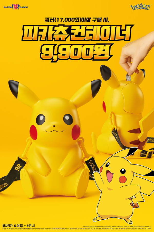 배스킨라빈스는 피카츄 컨테이너 출시를 기념한 프로모션을 진행한다. 6월 2일부터 오프라인 매장에서 아이스크림 쿼터(1만7000원) 사이즈 이상 구매 시 피카츄 컨테이너를 9900원에 만나볼 수 있다.