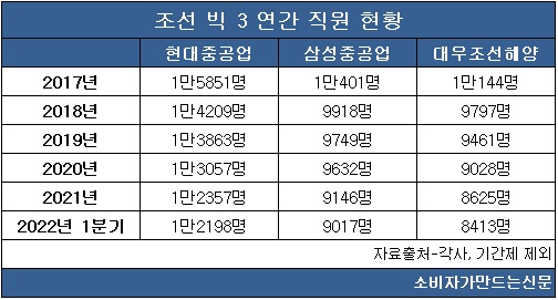 조선업계는 2010년대 중반부터 오랫동안 불황을 겪었다. 결국 대규모 구조조정이 이뤄졌고 인력도 절반 이상 감소했다. 한국조선해양플랜트협회에 따르면 국내 조선업 종사자(협력사 포함)는 2014년 약 20만3000명이었으나, 현재는 약 9만2000명으로 55% 감소했다.