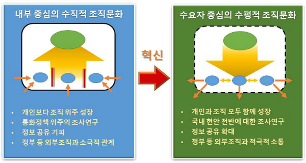 한은 측은 "국내 경제의 정확한 진단과 경제현안에 대한 유효한 정책대안을 제시함으로써 외부 수요자들에게 전문성을 인정받고 조직과 개인의 성장이 선순환되는 전문가 조직으로 탈바꿈할 것"이라고 밝혔다.