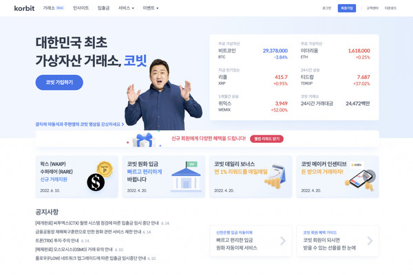 코빗은 우선 홈페이지 첫 화면을 보기 쉽게 새로 구성했다. 기존 홈페이지 상단에 배치한 가상자산 상승률 비교 차트를 없애고 주요 가상자산, 24시간·1주·1개월간 상승한 가상자산 목록 등을 크게 표시해 이용 편의성을 높였다.
