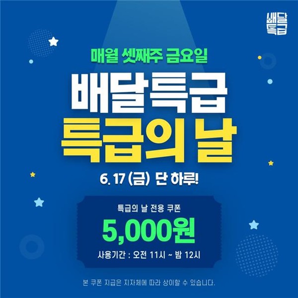 배달특급으로 최소 2만 원 이상 주문 시 5000원을 할인 쿠폰을 준다. 이벤트 당일 오전 11시부터 오후 11시 59분까지 쓸 수 있다.