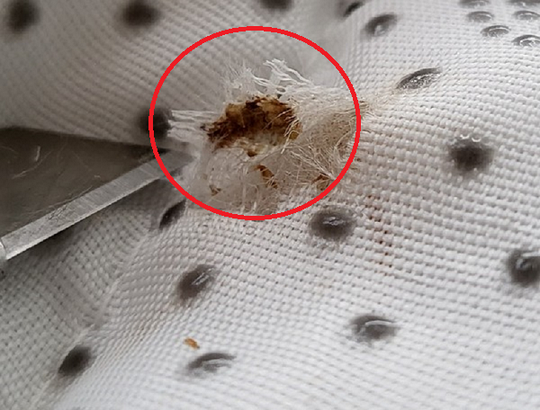 인천광역시 연수구에 사는 김 모(여)씨는 최근 구매한 유명 브랜드의 이불 패드에서 벌레로 추정되는 갈색 이물을 발견했다. 김 씨는 찝찝한 마음에 이불을 칼로 찢어 살폈는데 벌레 같은 게 늘러붙어 있었다고 주장했다.