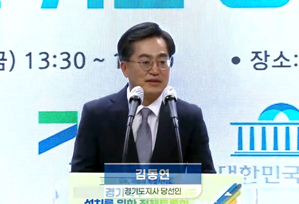 24일 오후 경기도청 북부청사 평화누리홀에서 열린 경기북부특별자치도 설치를 위한 정책토론회에서 김동연 당선인은 약 16분간의 기념사를 했다.