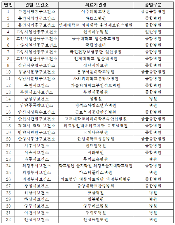 이부실드 투약의료기관은 경기도가 지난 1일 지정한 도내 병원급 이상 의료기관 32개소이다.