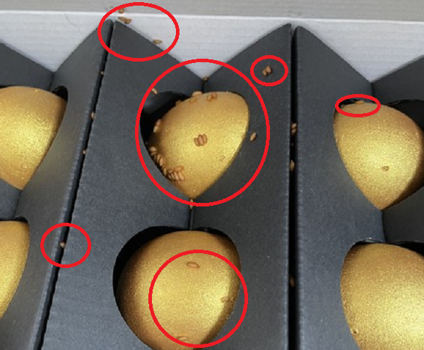 선물로 받은 황금 달걀에서 날파리와 벌레 알이 나와 소비자가 경악했다.