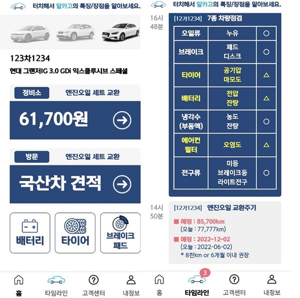 또한 부품, 공임, 운영비 등 모든 가격 결정과정을 고객에게 공개해 정비서비스 가격에 대한 고객 ‘신뢰’를 확보했다. ‘알카고’는 정비 전 과정을 타임라인으로 제시해 주는데, 타임라인을 통해 정비 사진, 점검 코멘트, 정비내역서, 추가 정비에 대한 견적을 시간 순으로 표시해 줌으로써 고객이 마치 현장에서 정비를 받는 것과 같은 상황을 연출해 ‘신뢰감’을 더한다.