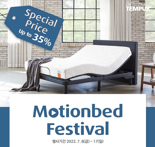템퍼코리아 ‘모션베드 페스티벌’은 7월 17일(일)까지, 롯데·신세계·현대아울렛 등 전국 20곳 아울렛 매장에서 동시 진행된다.