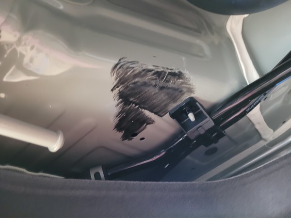 카센터에서 정비사와 함께 차량을 확인한 이 씨는 차량 하부에 있는 검은색 페인트 자국을 보고 깜짝 놀랐다.