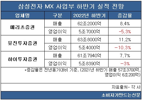 주요 증권사들은 하반기 삼성전자 MX 사업부의 매출은 다소 증가하나 영업이익은 감소할 것으로 전망하고 있다.