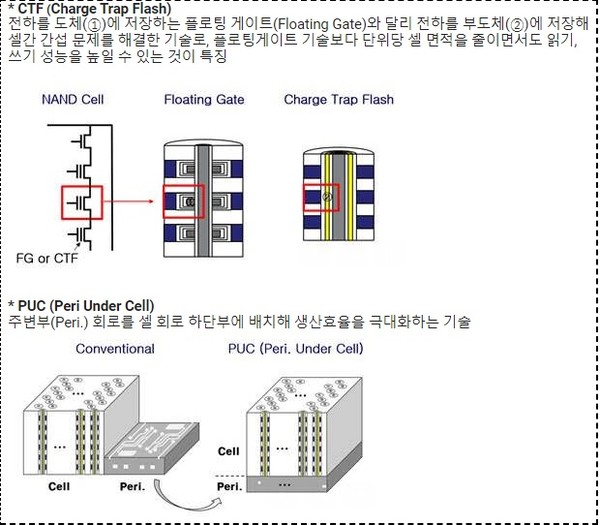 SK하이닉스는 2018년 개발한 낸드 96단부터 기존 3D를 넘어선 4D 제품을 선보여 왔다. 4차원 구조로 칩이 구현되는 4D를 만들기 위해 CTF(Charge Trap Flash)와 PUC(Peri Under Cell) 기술을 적용했다.