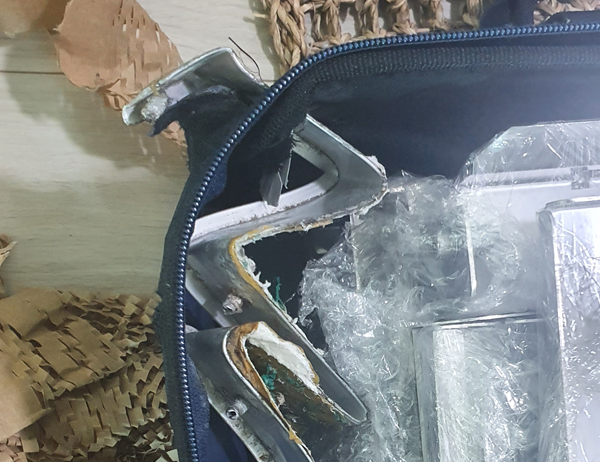 경기 안성시에 사는 신 모(남)씨는 지난 7월 26일 지인에게 선물할 물품을 택배로 부쳤다. 하지만 며칠 뒤 돌아온 택배는 박스가 찢어진 부위는 테이프로 칭칭 감겨 있었고 내용물은 쇳덩이에 뚫려 있었다.
